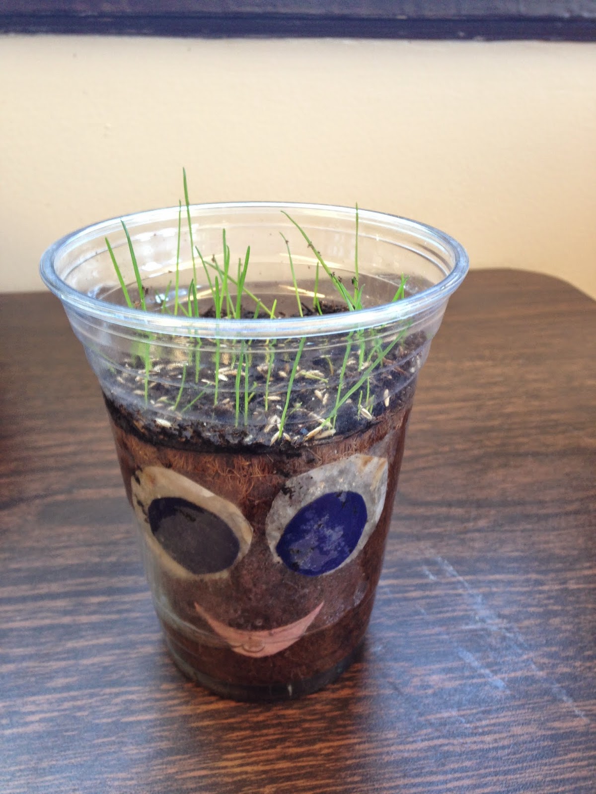 I saw this cute idea on Pinterest and we decided to try it during our planting unit in June. Simply add 50% grass seed and 50% dirt to a plastic cup, decorate, and watch them grow!